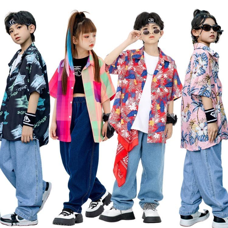 チェック柄 花柄 格子柄 星星柄 ピンクシャツ デニムパンツ tシャツ キッズダンス衣装 セットアップ 女の子 男の子 ヒップホップ hiphop K-POP 韓国子供服 応援団 演出服 練習着 普段着 発表会 おしゃれ かっこいい 字母柄 派手 jazz ジャズダンス