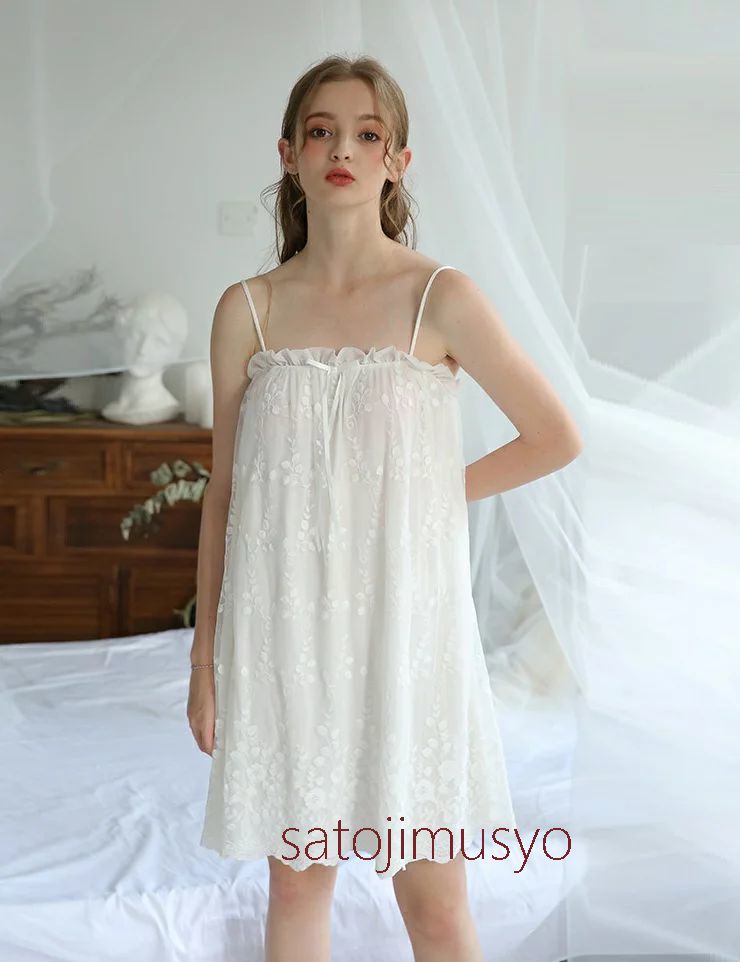 ネグリジェ 姫系 白 レース キャミソール フェミニン ルームウェア ワンピース レディース 寝巻き ナイトウェア 部屋着 婦人服 きれいめ パジャマ ラン
