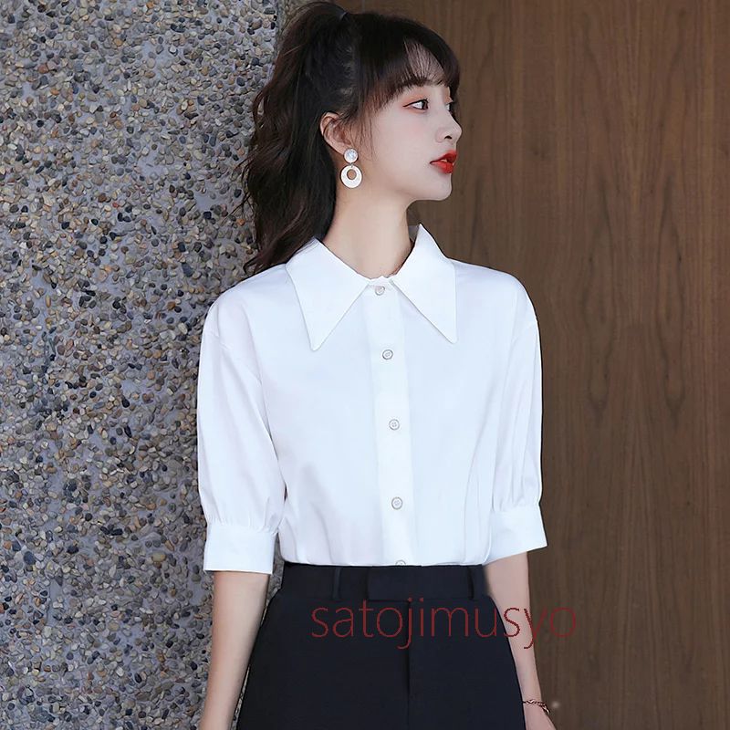 シャツ ブラウス 5分袖 五分袖 夏 レディース 事務服 トップス 前開き 会社 仕事着 フォーマル クールビズ 通勤 OL オフィス ビジネス 体型カバー カジュアル 無