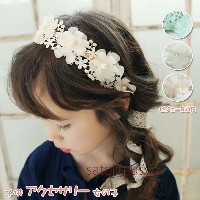 ビジュー&お花付き 華やかな印象 子供 アクセサリー 女の子 フォーマル キッズ 発表会 結婚式 七五三 3色選べる 髪飾り 髪留め お誕生日プレ