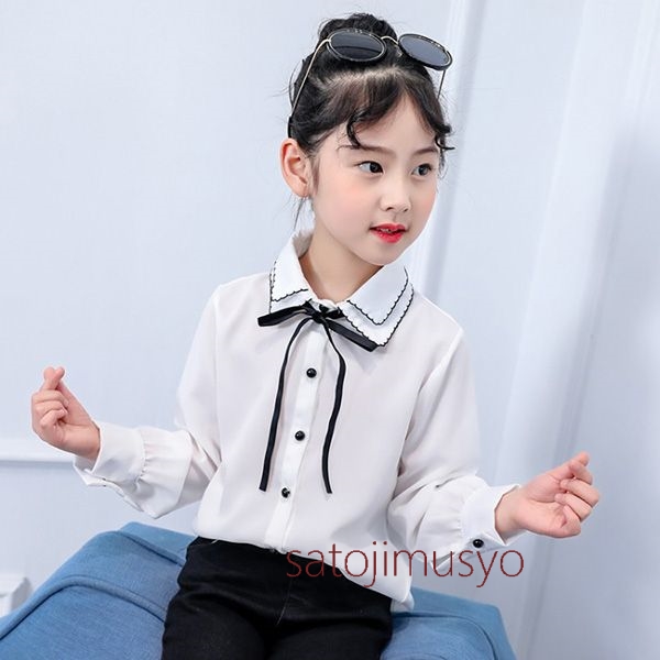 女の子 シャツ ブラウス 子供 フリル リボン 入学式 ブラウス 結婚式 子供 入学式 卒業式 卒園式 子供服 フォーマル 女の子 シャツ 長袖 リボン ブラウス 白 キ