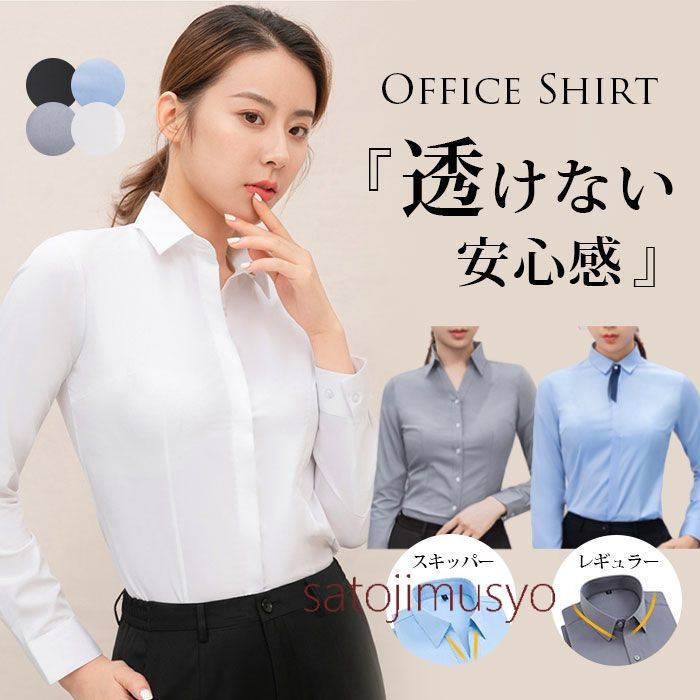 2タイプ選べる ブラウス オフィス シワになりにくい ワイシャツ レディース 通勤 事務服 就活 就職活動 リクルート 面接 就活 カッターシャツ スーツイ