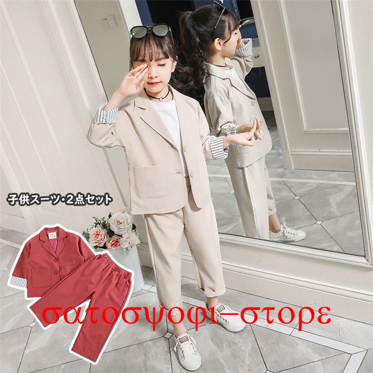 子供スーツ コート 入学式 カジュアルセット ガール スーツ 女の子 フォーマル 女の子 かっこいい 七五三 フォーマル 2点セット コート 長袖スーツ アウター 普