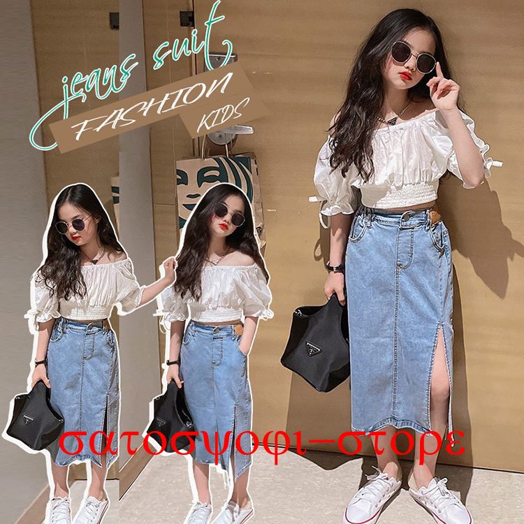 韓国子供服 キッズ セットアップ おしゃれ 夏 女の子 ワイド セットアップ カジュアル キッズ服 キッズファッション ガールズ 無地 スカート デニム 120-170C