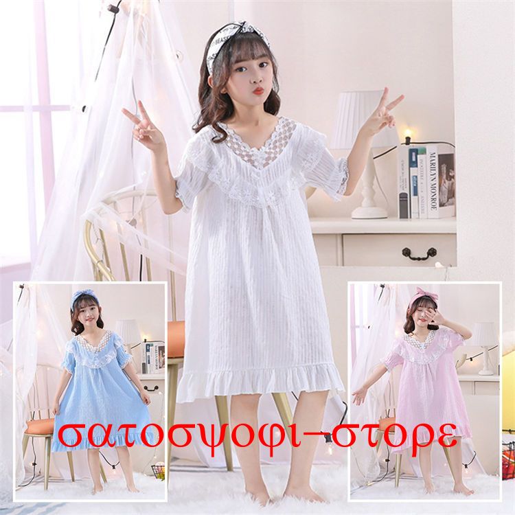 3色選べる!キッズ ネグリジェ 韓国 女の子 パジャマ ワンピース 春夏 半袖 子供服 ルームウェア 寝巻き かわいい 子供 ネグリジェ ワンピース 部屋着 ジュニア