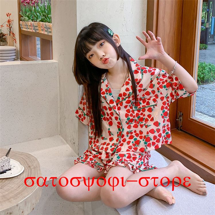 キッズ パジャマ 韓国 女の子 パジャマ パンツセット 春夏 半袖 クマ柄 子供服 ルームウェア 寝巻き かわいい 子供 ネグリジェ 部屋着 ジュニア 寝間着 女児 大