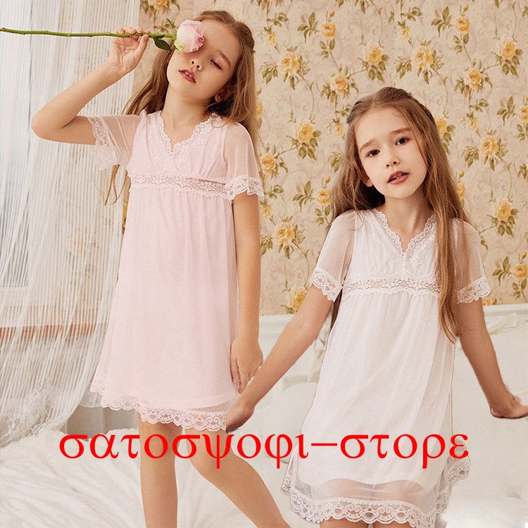 ネグリジェ キッズ服装 キッズファッション 韓国 女の子 ホワイト ピンク シンプル パジャマ ワンピース 春夏 半袖 レース 子供服 ルームウェア 寝巻き かわいい