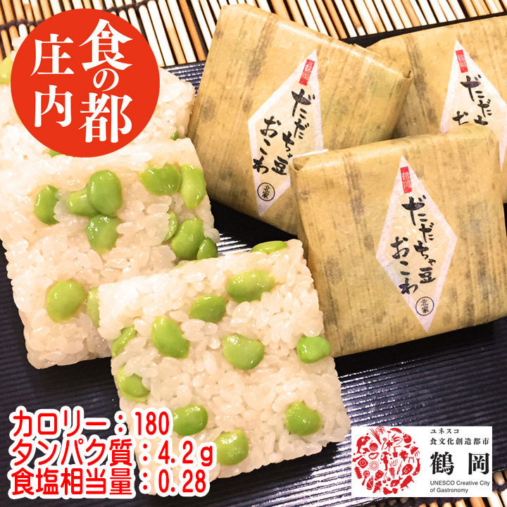 「だだちゃ豆おこわ」は希少な鶴岡産もち米「でわのもち」を使って、手作りで風味豊かに蒸しあげた逸品です。