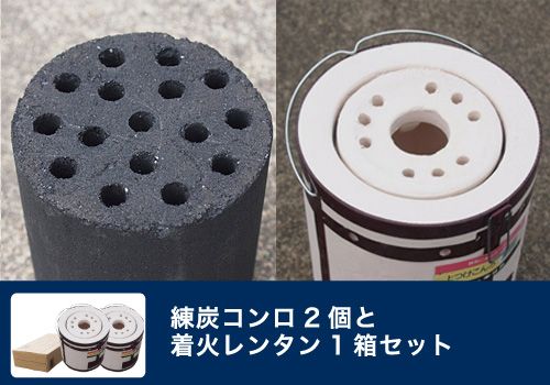 容易に着火することができ、経済性にもすぐれた練炭とコンロのセットです。着火レンタン8個入り1箱練炭コンロ2個