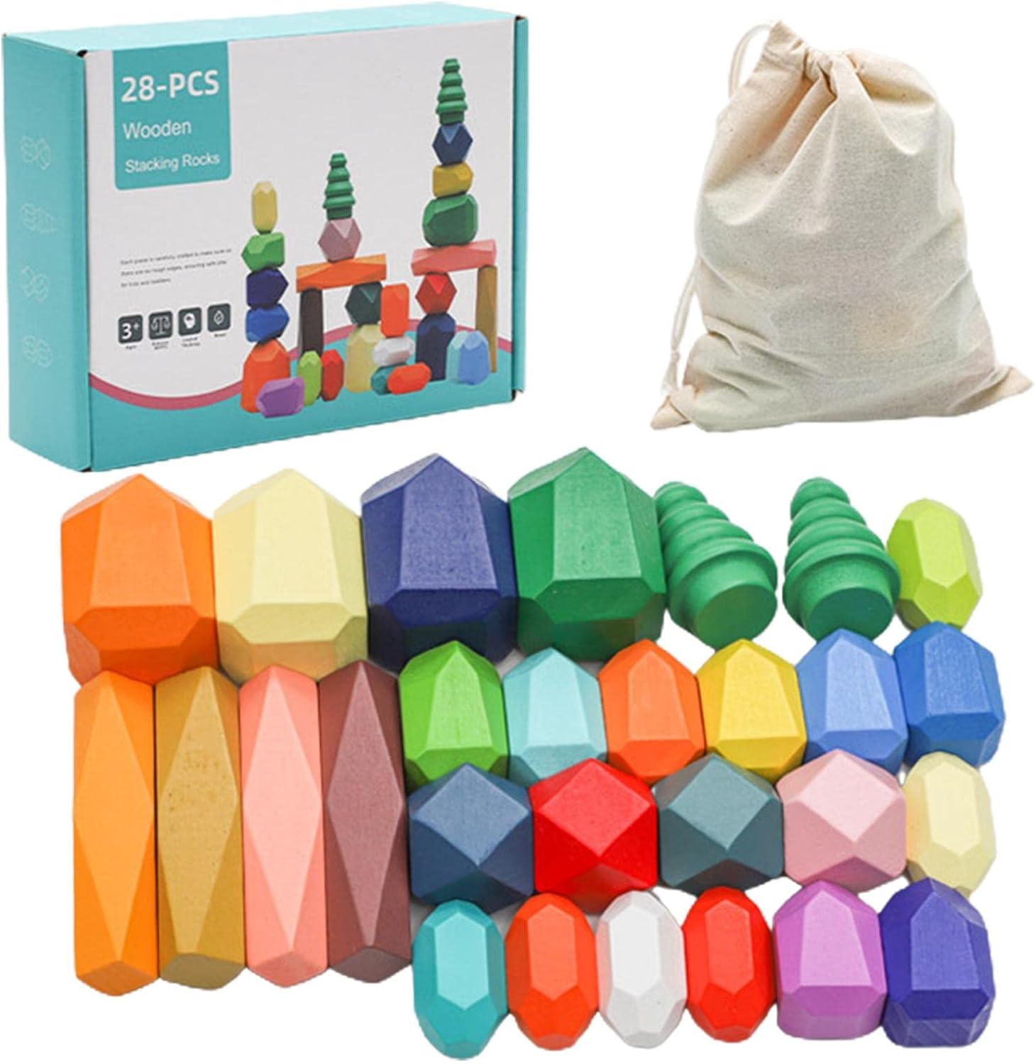 バランスよく積み上げられた石は、形がかわいいだけでなく、木の素材感もポイント。お子様が色や形の認識に関する知識を向上させ、お子様の思考、創造性、思考スキルを発達させるのに役立