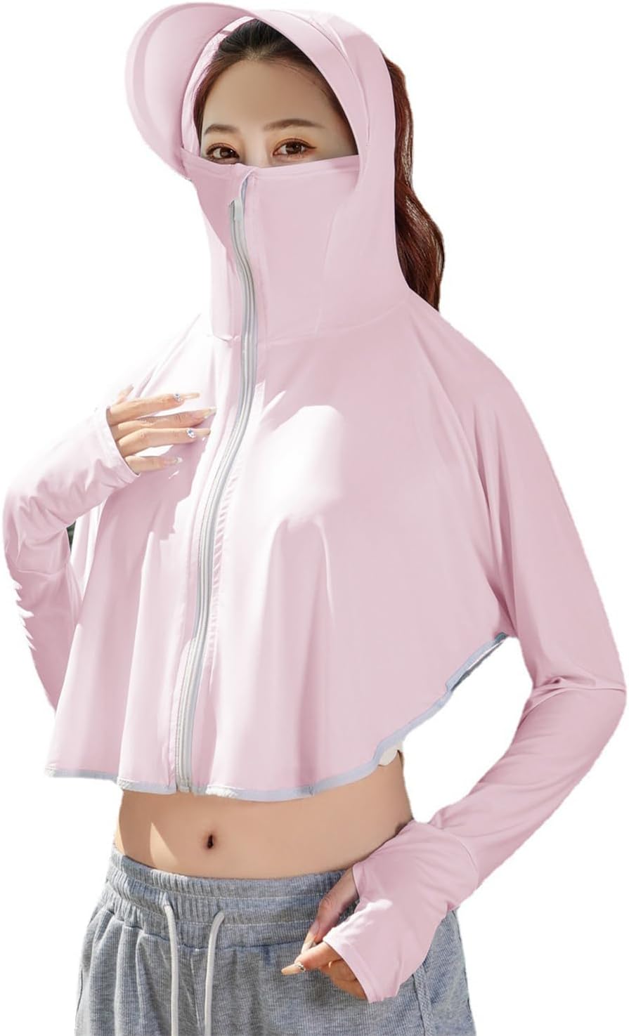 ラッシュガード レディース 日焼け対策ウェア ラッシュガード UVカット パーカー 薄手 通気 UPF50+ 大きいバイザー(xq320)