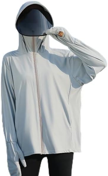 【オールインワンデザイン】パーカーのファスナーを口元まで上げることができ、フードも付いているので首周りの日焼け防止に効果があり、袖先に親指穴付きで手の甲までガード!多機能な仕様になってます。真夏の強い日差しからお肌を守ってくれる日焼け止め服。
