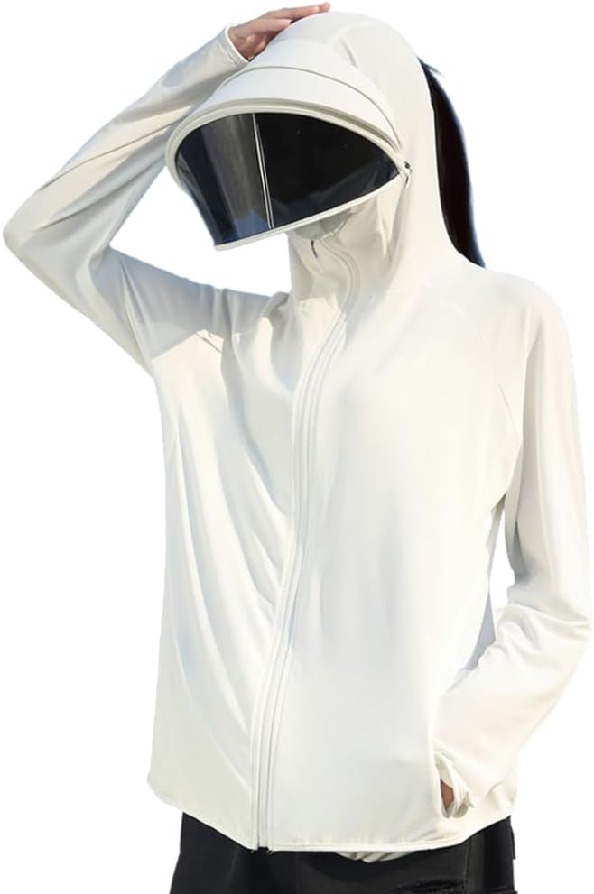 ラッシュガード レディース パーカー UVカット 接触冷感 日焼け防止用ウェア 広いつば サムホール付き 夏服(xq396)