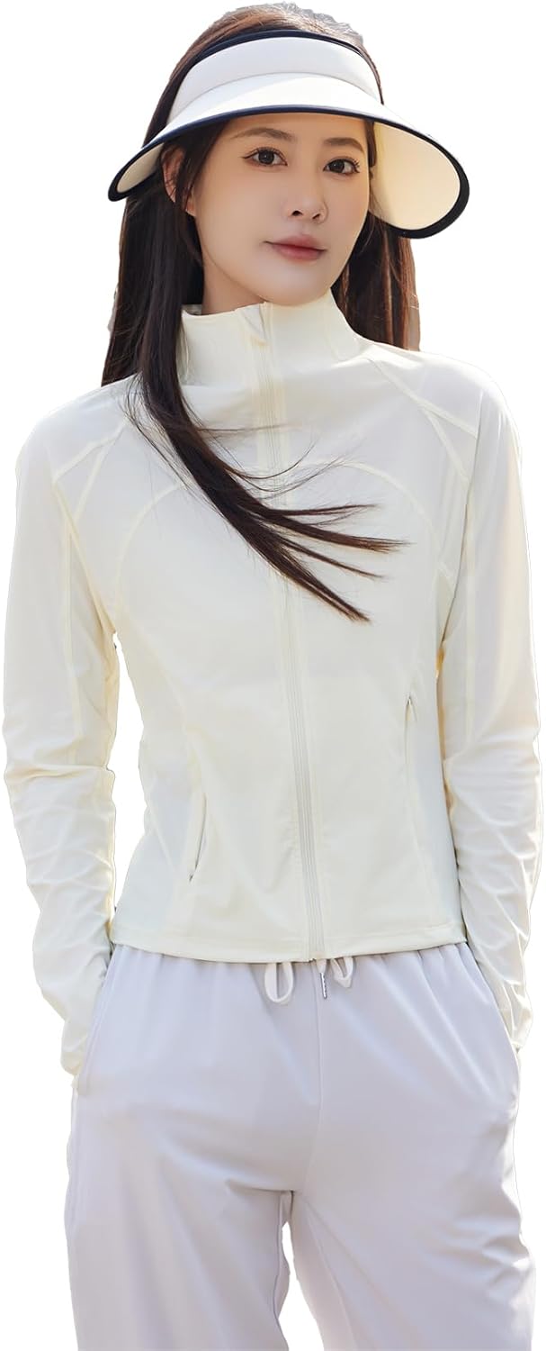 uvカット パーカー レディース ラッシュガード 冷感 涼しい フードなし スリム 長袖 upf50 薄手 指穴付き(xq415)