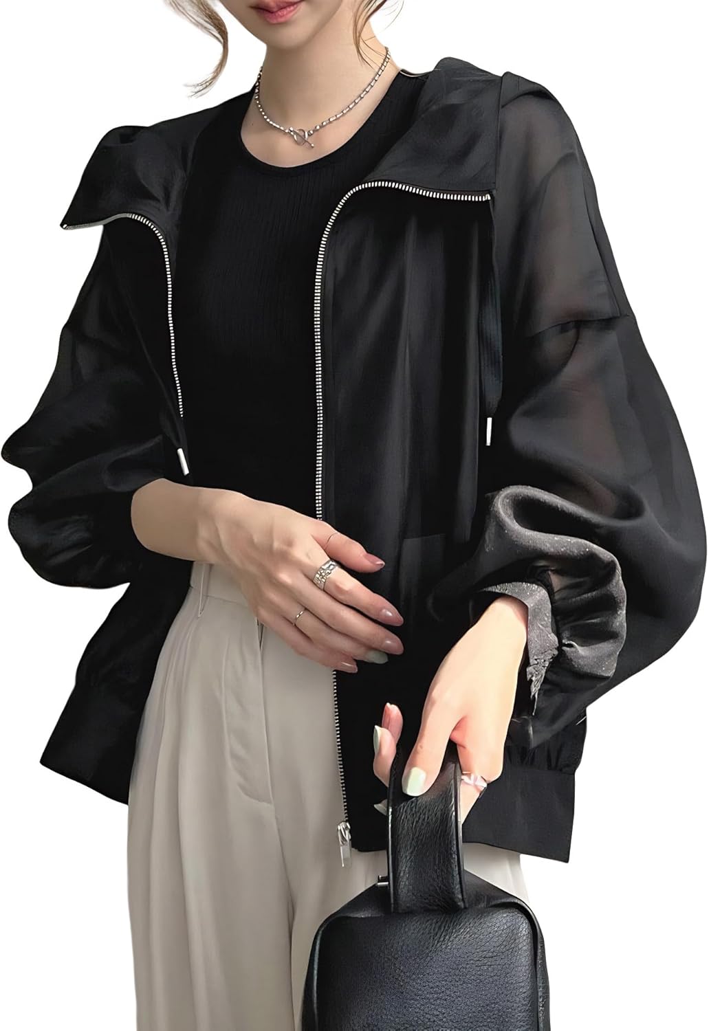 UVカット パーカー レディース ライトアウター ボリューム シアートップス マウンテンパーカー 薄手 ジャケット 春夏 紫(xq416)