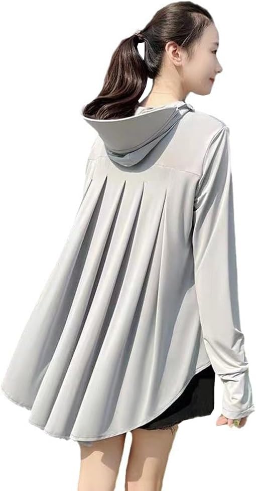 ラッシュガード レディース UPF50+ つば付き フリル ロングパーカー 日焼け防止 接触冷感 速乾 通気性 指穴 ロング 長袖 UVカット 体型カバー 水着 フード ストレッチ生地 耐塩加工