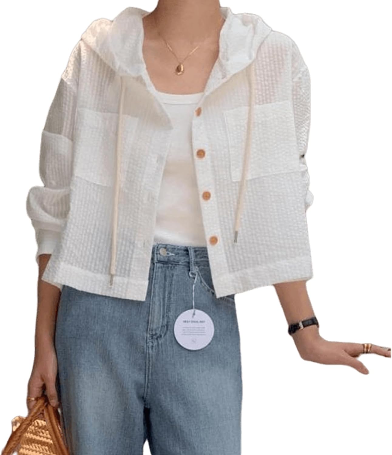UVカット パーカー レディース カーディガン ショート丈 フード付き ストライプ 薄手 長袖 冷房対策 日除け服 ゆったり(xq441)