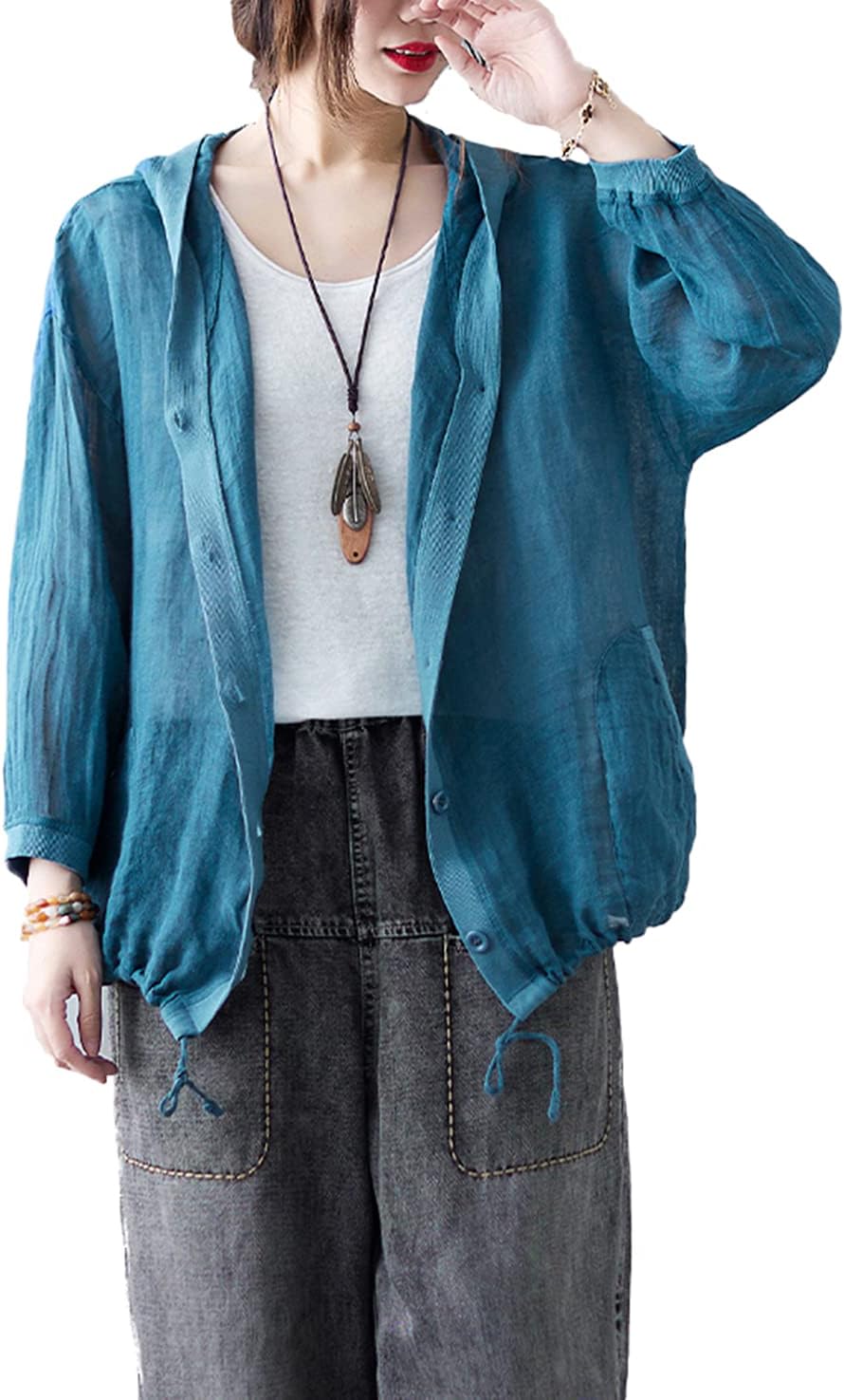 ジャケット レディース 薄手 フード付き カーディガン ゆったり サマージャケット 綿麻 UVカット パーカー 冷房対策 ア(xt048)
