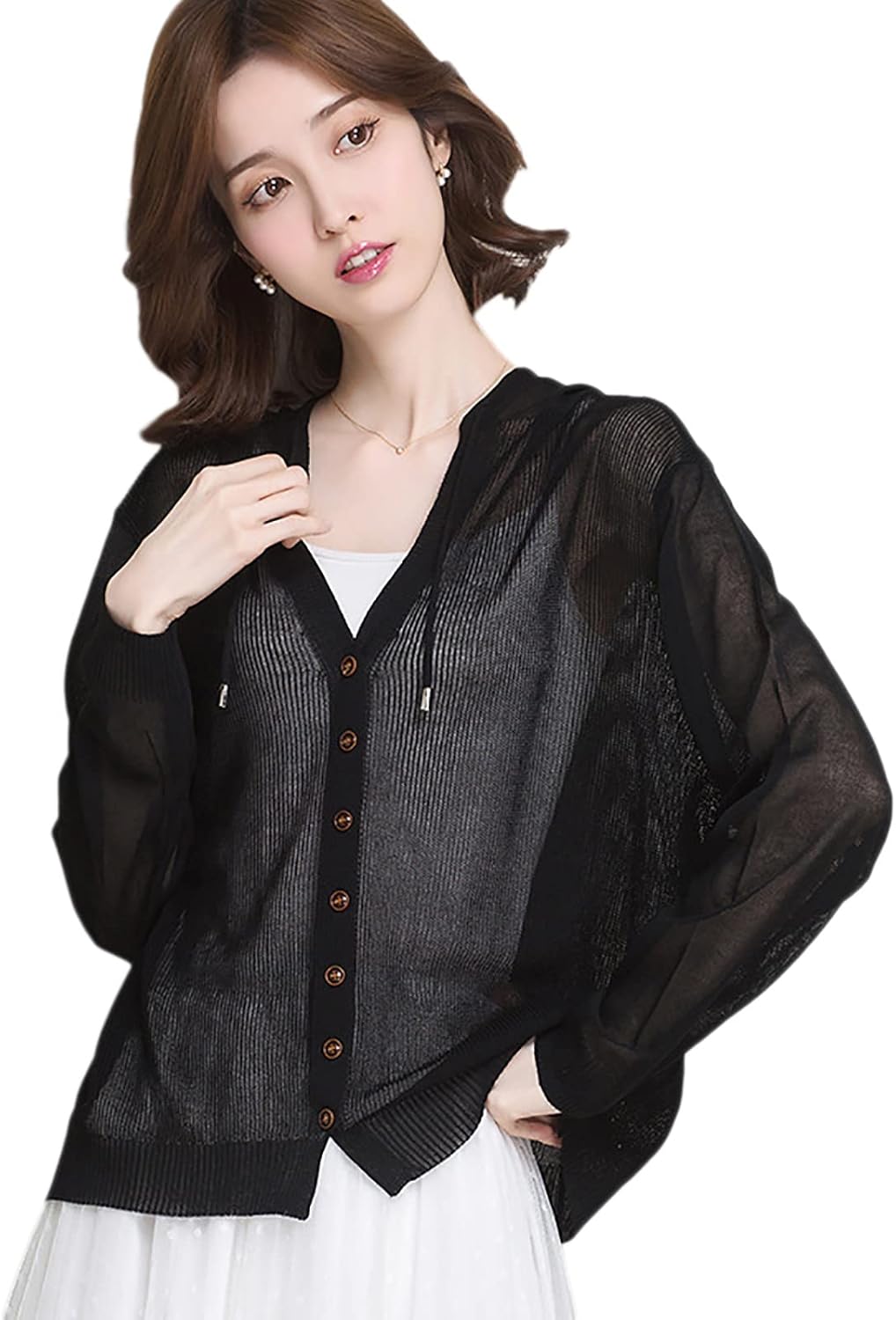 カーディガン サマーニット レディース カジュアルフード付きパーカー UVカット 薄手 羽織りトップス 冷房対策 シアー感チ(xt081)