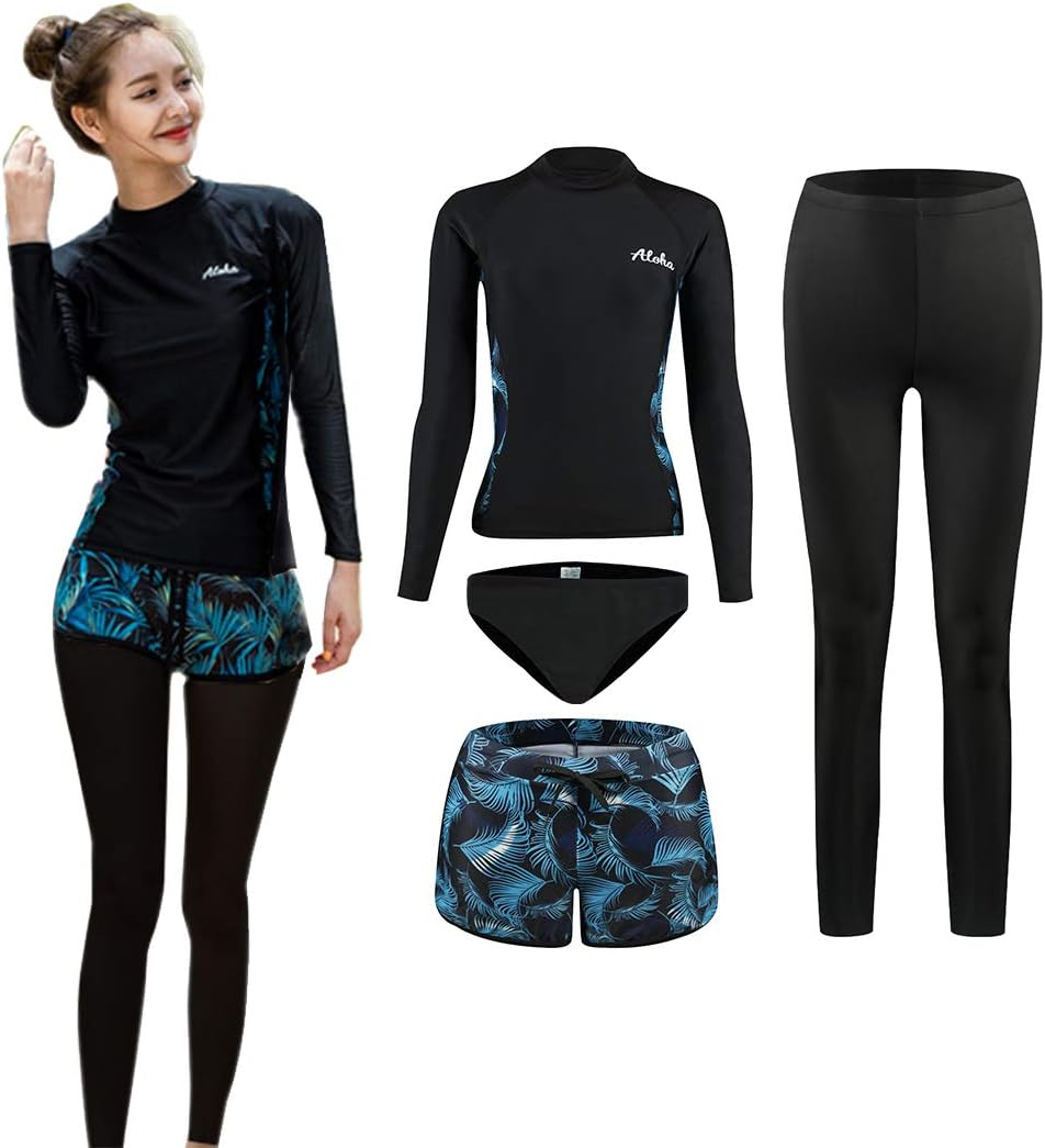 ラッシュガード レディース 水着 タンキニ セパレーツ 長袖 前開き ショートパンツ レギンス ブラ ビギニショーツ フィッ(xt091)