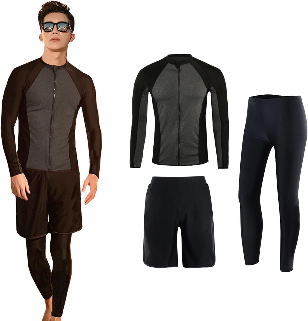ナランブ 水着 メンズ ラッシュガード セット 長袖 サーフパンツ レギンス フィットネス お洒落 水陸両用 贅沢三点セット(xt095)