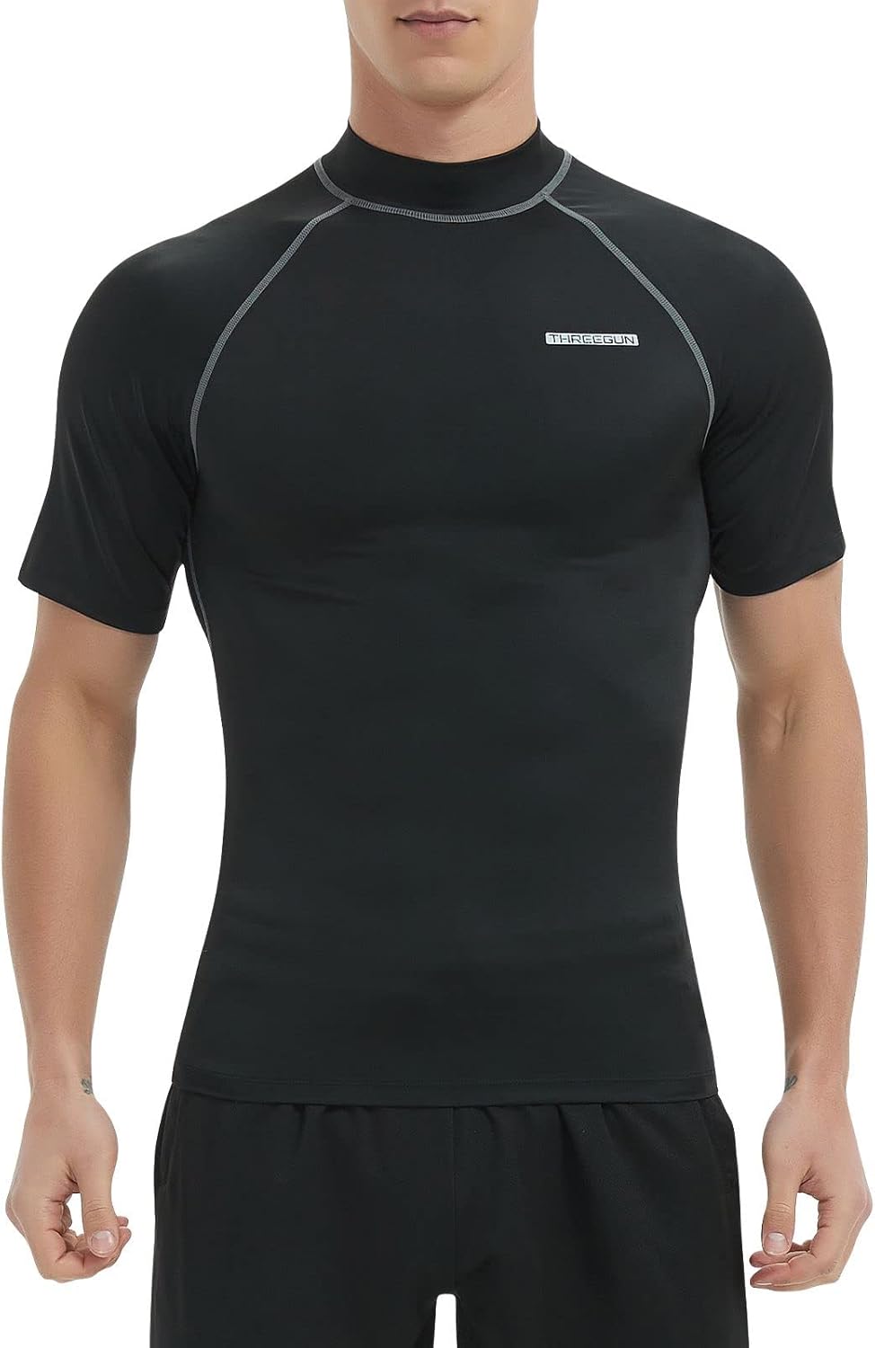 ラッシュガード メンズ 半袖 ハイネック 水着 スイムウェア 水陸両用 コンプレッション スポーツシャツ UVカット 冷感速(xt190)