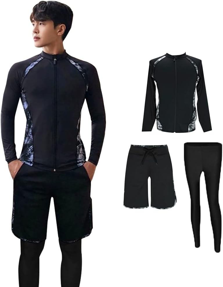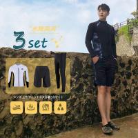 ラッシュガード メンズ 水着 長袖 サーフパンツ レギンス 3点セット フィットネス 男性 ビーチ 水泳 UVカット 吸汗速(xt207)