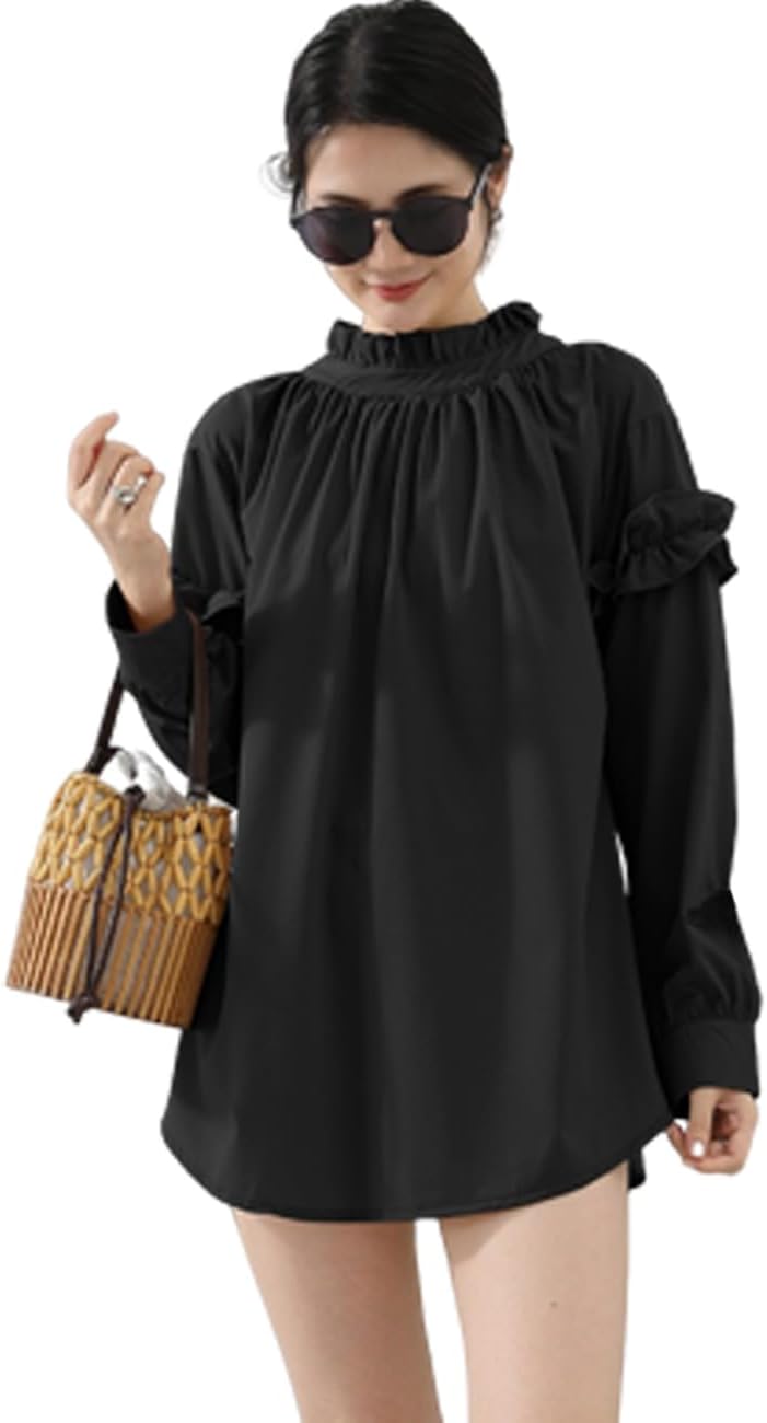 水着 レディース 長袖 トップス 体型カバー ゆったり フリル ハイネック おしゃれ ラッシュガード 速乾 紫外線対策 水陸(xt260)