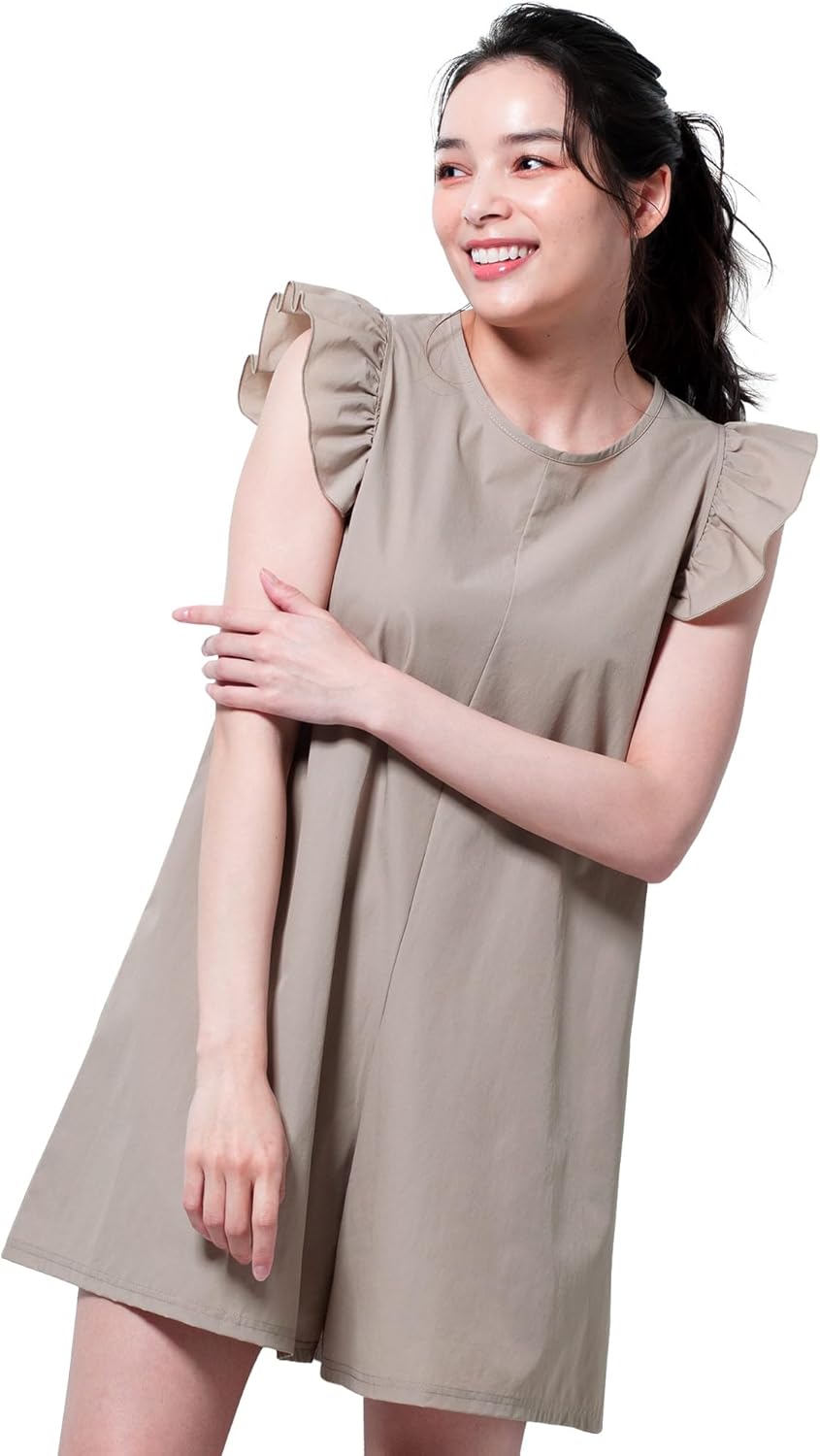 ラッシュガード オールインワン 水陸両用 レディース UVカット フリル ロンパース ノースリーブ(xt411)