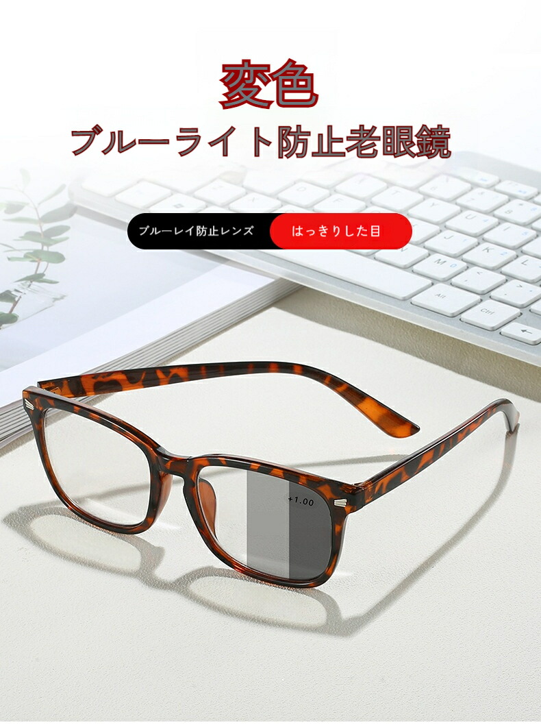 マルチフォーカル 調光 ブルーライト防止 老眼鏡 男女兼用 遠近両用 老眼鏡 高齢者向け読書用眼鏡 拡大鏡
