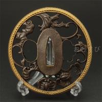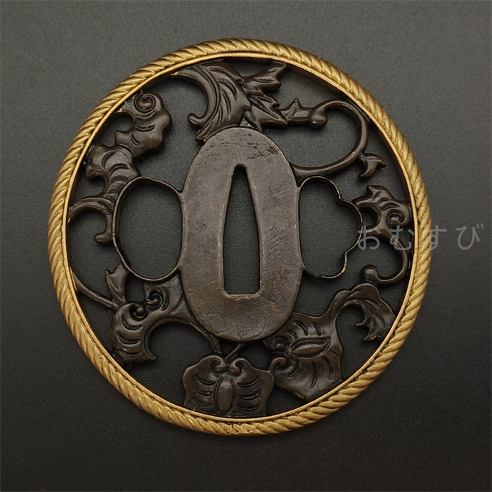 刀鍔 金縄唐草の図 銅地 金工 細工 鍔 つば 居合用 日本刀装具 刀剣美術
