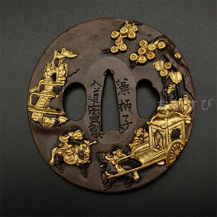 刀鍔 日本刀装具 刀鍔 大名行列の図 銅地 金工 細工 鍔 つば 居合用 刀剣美術