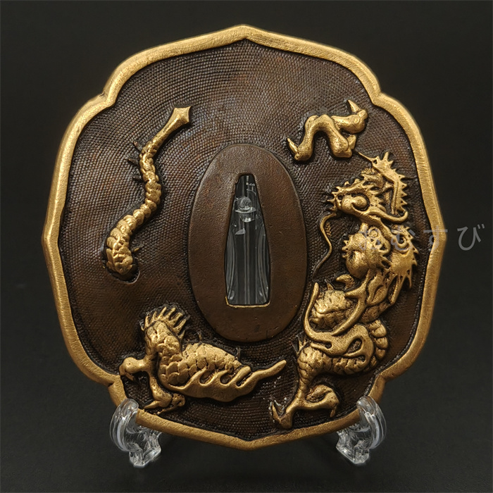 刀鍔 日本刀装具 金龍の図 刀鍔 銅地 細工 絵金銀 鍔 刀の鍔 ツバ 鐔 刀鐔 刀剣美術 武道具