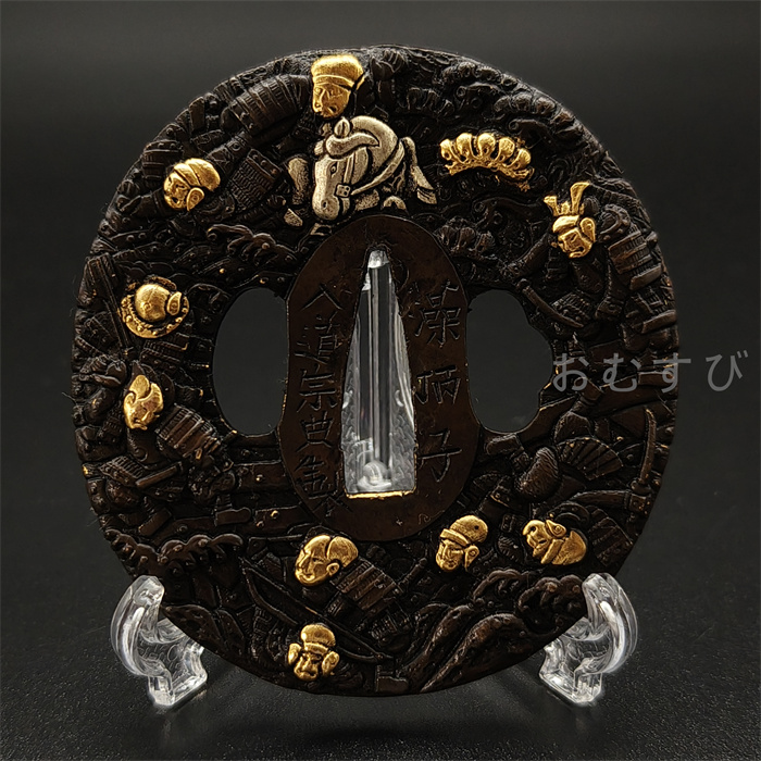 刀鍔 日本刀装具 戦国合戦の図 刀鍔 銅地 細工 絵金銀 鍔 刀の鍔 ツバ 鐔 刀鐔 刀剣美術 武道具