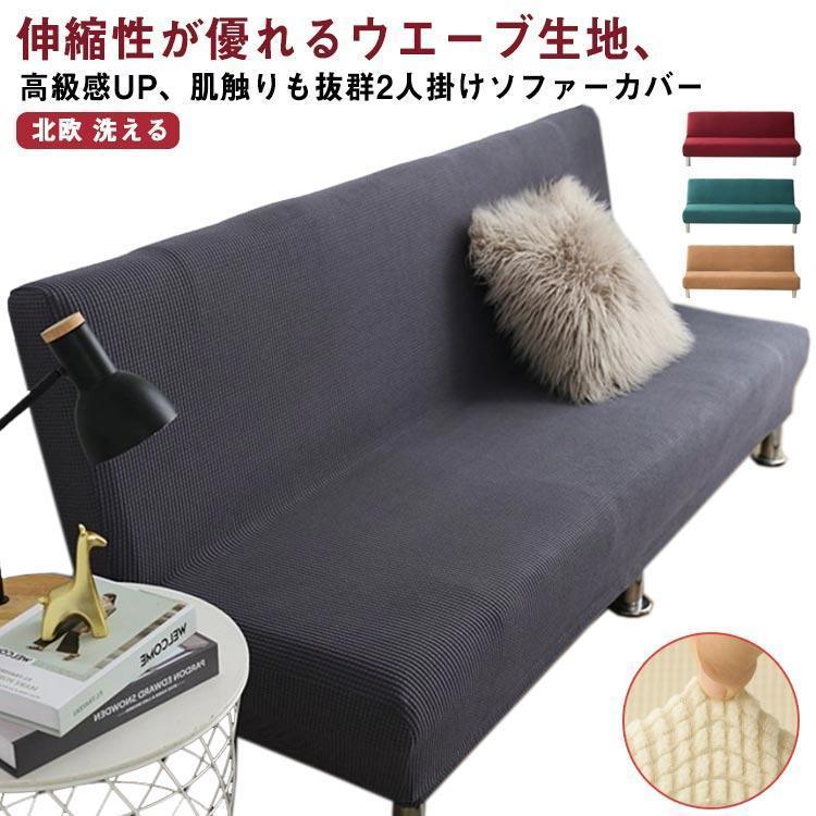ソファーカバー 2人掛け 肘なし ウエーブ生地 フィット ズレない ストレッチ 伸縮 ウォッシャブル 北欧 おしゃれ 2人用 肘無し 肘掛け無し フィ