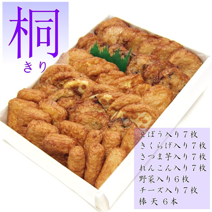 魚肉、さつま芋、澱粉、清酒、砂糖、食塩、れんこん、きくらげ、ごぼう、プロセスチーズ、人参、にら、かつおぶし粉末、かつおエキス粉末、しいたけエキス、昆布粉末、たん白加水分解物、ふどう糖、酒精、七味唐辛子、揚げ油(なたね油)