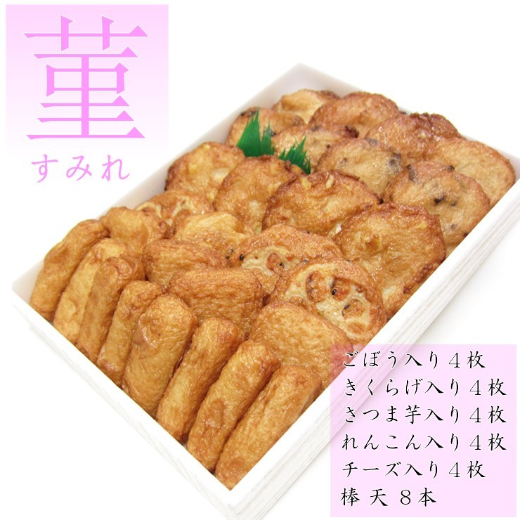 魚肉、さつま芋、澱粉、清酒、砂糖、食塩、れんこん、きくらげ、ごぼう、プロセスチーズ、かつおぶし粉末、かつおエキス粉末、しいたけエキス、昆布粉末、たん白加水分解物、ふどう糖、酒精、七味唐辛子、揚げ油(なたね油)