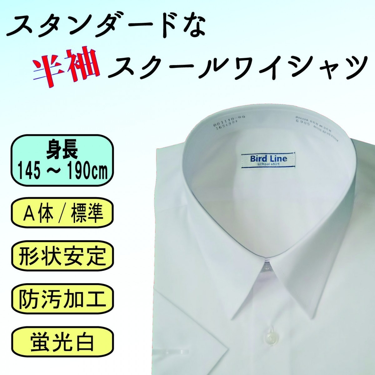 ワイシャツ 男子 スクール 半袖 A体 防汚 形状安定 ノーアイロン