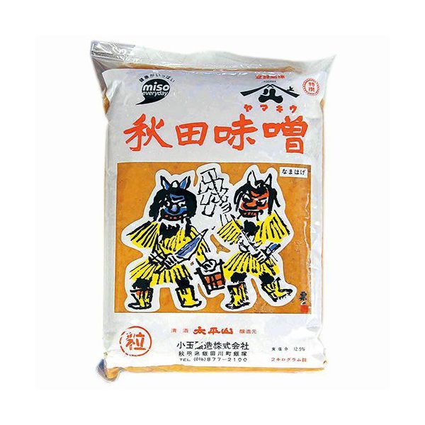 小玉醸造 株式会社品 名 米みそ名 称 秋田味噌(粒)内容量 2kg 賞味期限 製造日より常温で180日 保存方法 直射日光を避け常温で保存してください。 産 地 国産 原材料 大豆、米、食塩、酒精商品説明 米の秋田は酒のくに 酒屋でできた秋田味噌です。 注意事項 開栓後は風味を保つためできるだけ 冷蔵庫に入れて下さい。
