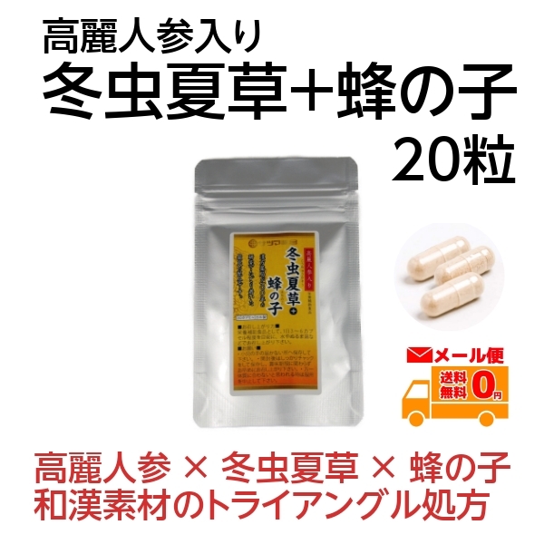 冬虫夏草 サプリ ベータグルカン 高麗人参入り冬虫夏草+蜂の子 20粒 アミノ酸 ビタミン ミネラル メール便送料込〔サツマ薬局〕