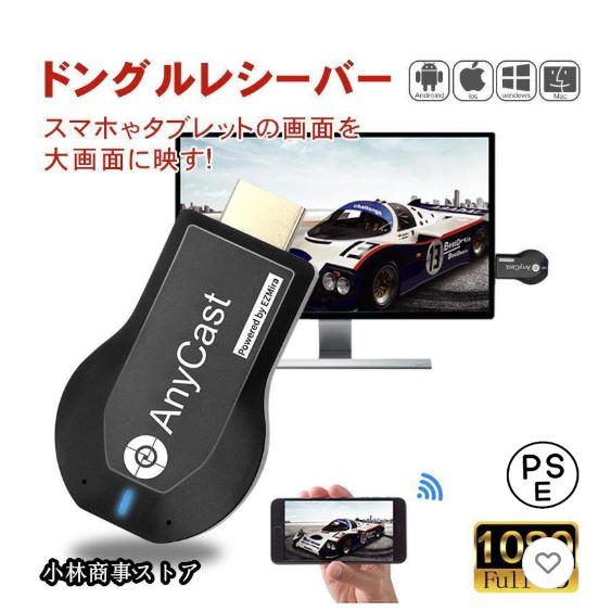 AnyCast ドングルレシーバー HDMI WiFi ディスプレイ iPhone Android Windows MAC ミラーリング スマホの画面をテレビで視聴 無線HDMI転送 Youtubeを見る