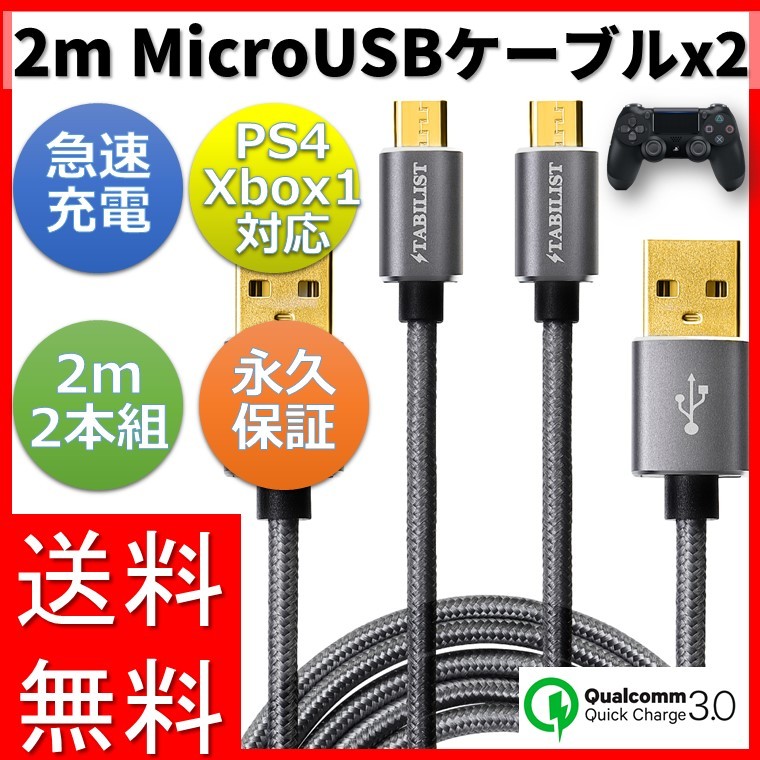 ・長さ: 2m x 2本組 USBA (標準USB) to Micro USB ケーブル 金メッキ加工 急速充電 PS4 Xbox Oneなどのコントローラー対応