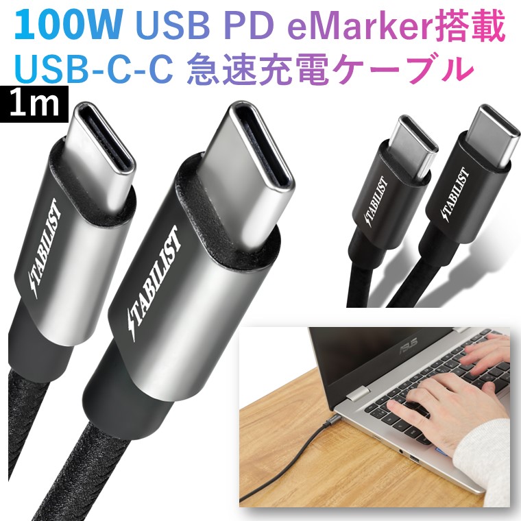 【小型/PC充電対応】 100W USB-C PD 1m 急速充電ケーブル eMarker搭載 Type-C to C typec iPhone 15 max データ転送 充電コード ctoc USBC 高速