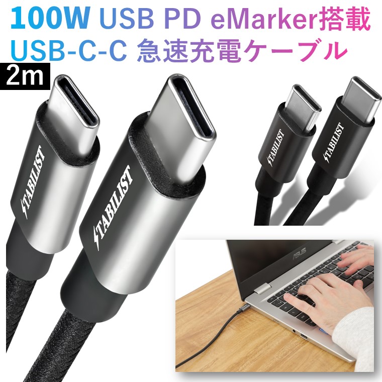 【小型/PC充電対応】 100W USB-C PD 2m 急速充電ケーブル eMarker搭載 Type-C to C typec iPhone 15 max データ転送 充電コード ctoc USBC 高速