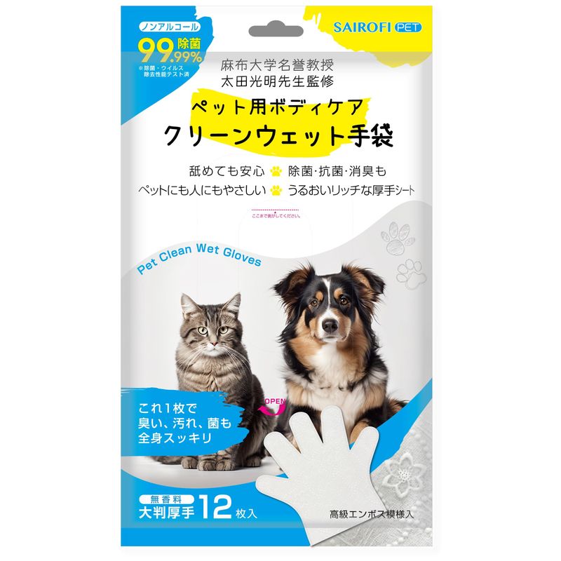 麻布大学名誉教授 獣医師監修ペット用ボディケア クリーンウェット手袋 犬猫共用 シャンプータオル ウェットシート 大判 潤い 厚手 無香料