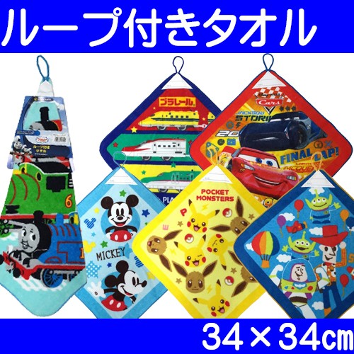 キャラクター ループ付きタオル 約34×34cm お名前ラベル付き 男の子向き柄