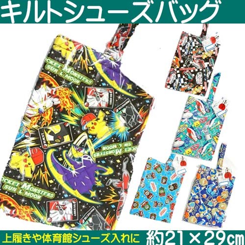 キルトシューズバッグ 通園 通学 上履き入れ ポケモン ドラゴンボール トーマス トミカ プラレール