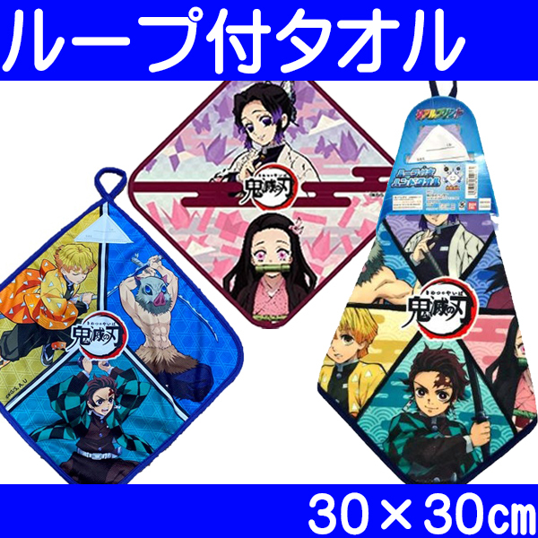 【値下げ】鬼滅の刃 ループ付きタオル 約30×30cm お名前ラベル付き