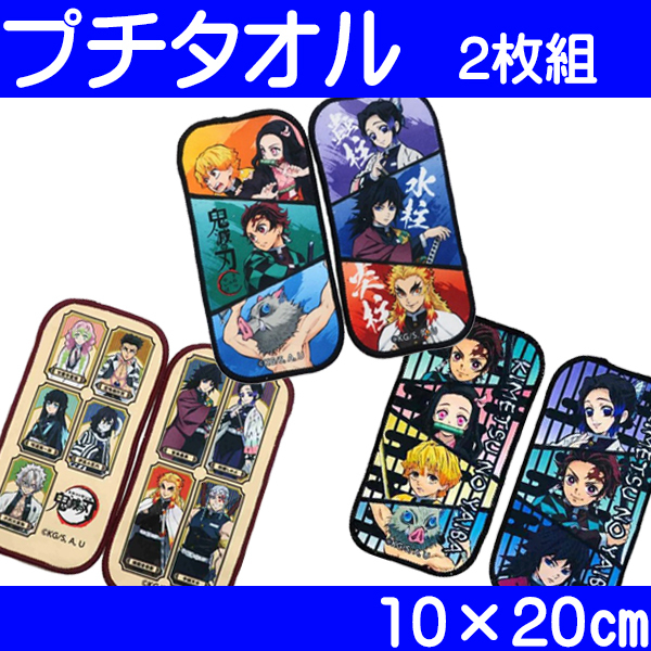 【値下げ】鬼滅の刃 プチタオル 2枚組セット 約10×20cm ポケットにスッキリ