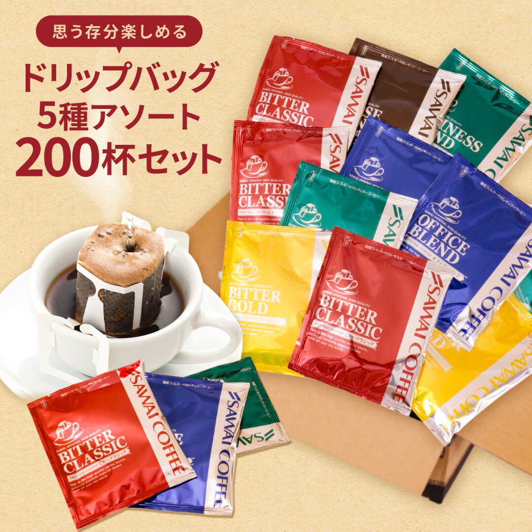 | 内容量 | ・ビタークラシック 7g×40袋 ・ビターゴールド 7g×40袋 ・ハウスブレンド 7g×40袋 ・ビジネスブレンド 7g×40袋 ・オフィスブレンド 7g×40袋 |